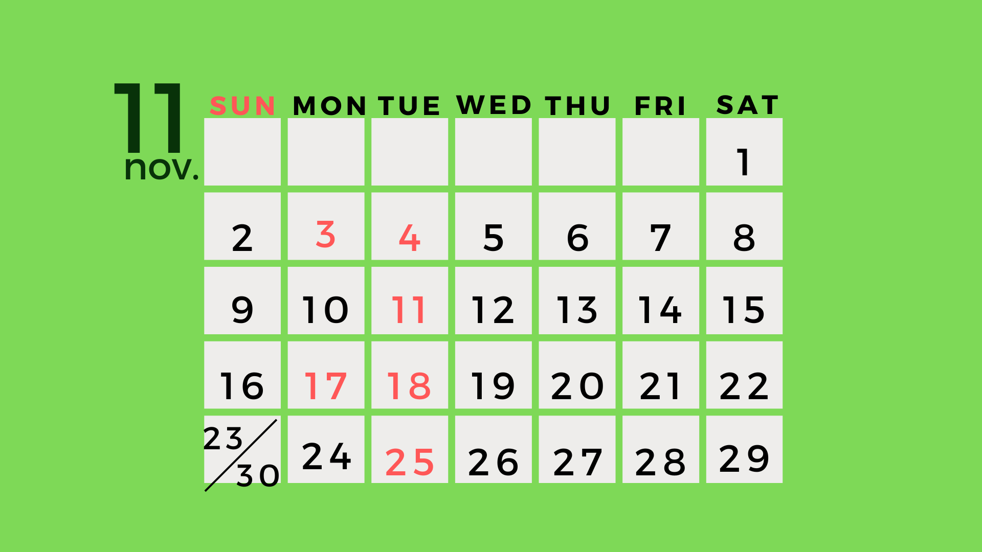 R.7.11月お休み【定休日、スタッフのお休み】 2025.10.23 11月のお休みは 毎週火曜日と第1,3月曜日になっております。 何卒宜しくお願い致します。 スタッフのお休みは 山田5,10日 吉田 8,9,10,20,27日 伊藤 12,16,28日 浅利 7,16,19日 中野 14,20,24日 児玉 10,21 武者 5,13日 北条は第二、四日曜と祝日休みで平日が17時までの出勤となっております。 Tweet Share RSS Pin it R.7.9月お休み【定休日、スタッフのお休み】