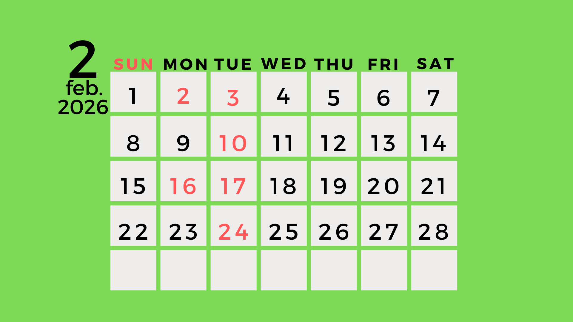 R.8.2月お休み【定休日、スタッフのお休み】 2026.01.21 2月のお休みは 毎週火曜日と第1,3月曜日になっております。 何卒宜しくお願い致します。 スタッフのお休みは 山田9,27日 吉田 5,11,26日 伊藤 9,25,28日 浅利 4,5,20日 中野 15,19,26日 児玉 9,11日 武者 12,25日 北条は第二、四日曜と祝日休みで平日が17時までの出勤となっております。 Tweet Share RSS Pin it 年末年始のお休みとネット予約について